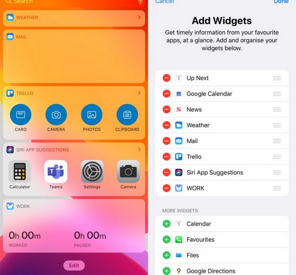 - Appuyez sur «Ajouter un widget», puis confirmez votre sélection avec «Terminé».