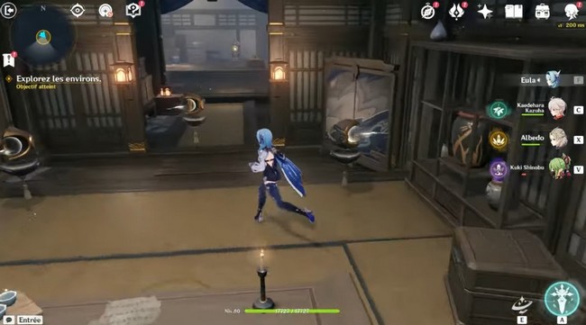 Naviguez jusqu’à l’île mystérieuse pour rencontrer les autres personnages. Après une longue conversation, vous serez déplacé vers un autre endroit (Donjon 1) où Kazuha a disparu.