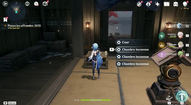 Placez la position du levier sur la cour (première pièce) et allez à l’intérieur. Ici, vous devez ramasser trois Omamori mélodiques et les offrir à trois sanctuaires spéciaux.