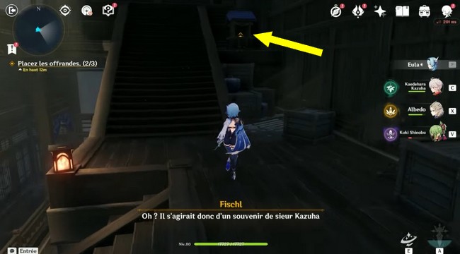 Une fois que vous aurez offert les trois Omamori mélodiques, vous trouverez Kazuha derrière la dernière porte.