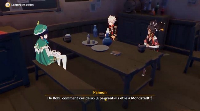 Dirigez-vous vers la taverne Au Cadeau de l’Ange pour trouver Venti, Xinyan et Kaedehara Kazuha. Parlez à Venti.