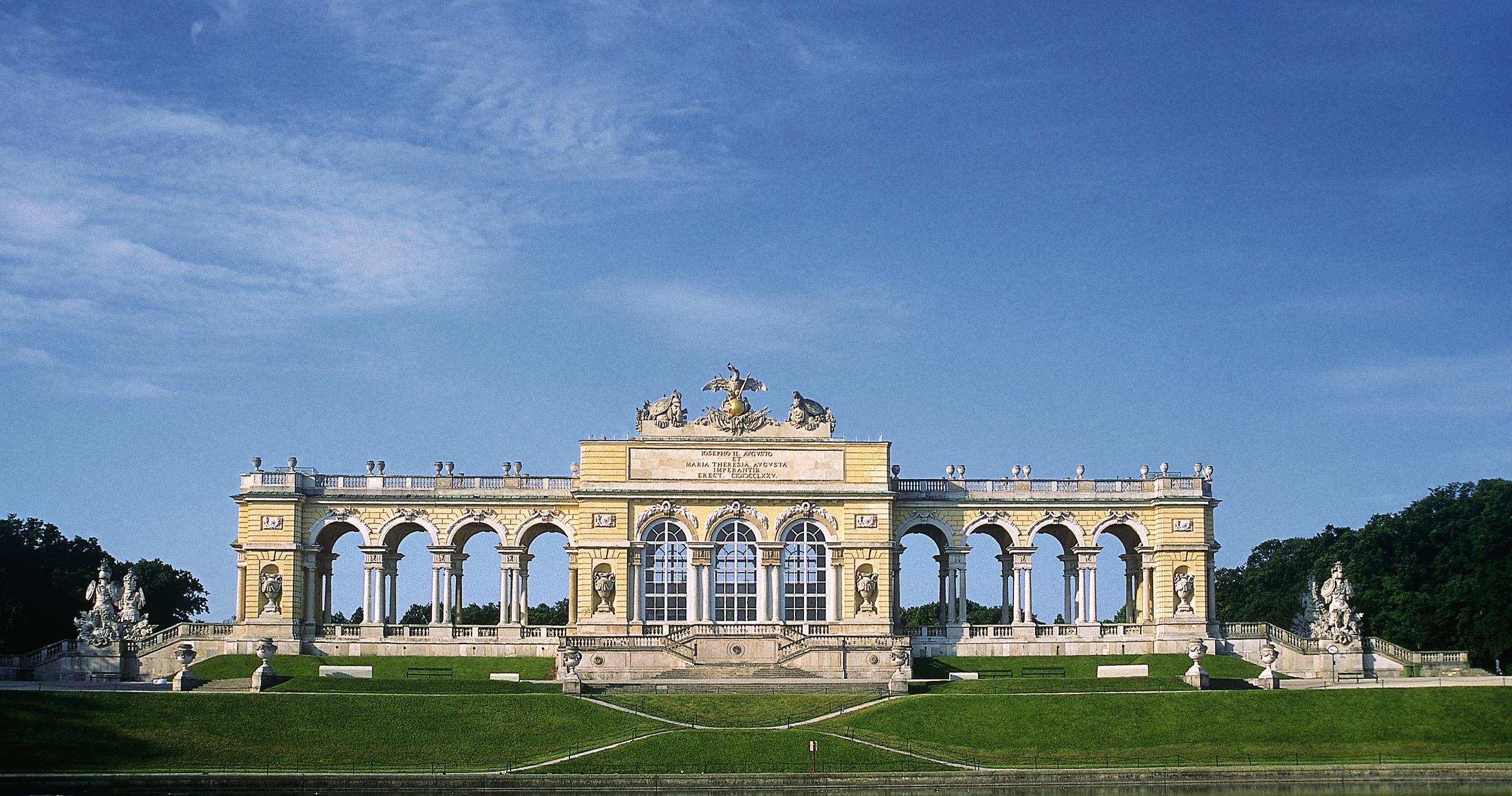 Face au palais, la gloriette sur la colline impressionne par sa taille. Marcher en montée peut se fatiguer, il vaut donc la peine de s’arrêter d’abord au pied de la colline pour admirer la vue sur la fontaine de Neptune construite en 1780. L’une des plus grandes et des plus célèbres gloriettes au monde est couronnée d’un immense aigle impérial. Actuellement, dans le pavillon, entre les arcades, vous trouverez un café où vous pourrez boire un café et manger le célèbre gâteau de Sacher. Un billet de gloriette vous donne le droit de monter les escaliers jusqu’au sommet , d’où vous pourrez admirer le magnifique panorama de Vienne. Vous pouvez également voir à quel point le palais est immense.