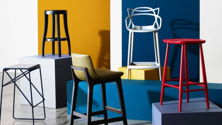 Si vous n’avez pas assez d’espace, optez pour une solution de mur pliant pour combiner un tabouret coloré.