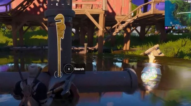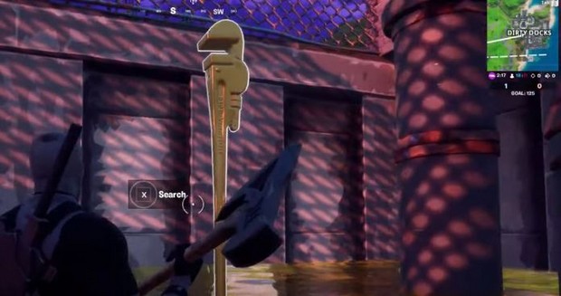 Pour accomplir cette mission, nous devons trouver cinq clés à tuyau en or placées dans des endroits de la carte de Fortnite !