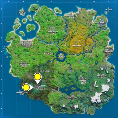 A Slurpy Swamp, il y a plusieurs endroits où vous pouvez pêcher. Les plus pratiques sont deux et sont situées au nord et à l’ouest de la zone.