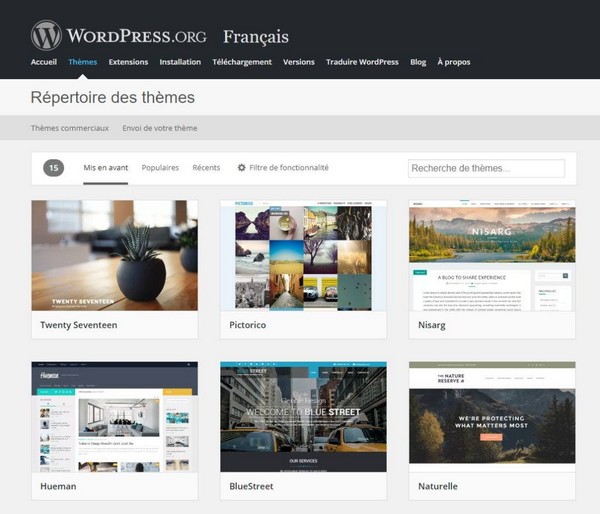 - thèmes (la conception de votre site)
