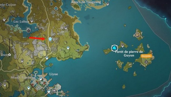 Pour trouver l’emplacement de la Statue des Sept dans Domaine de L’Aurore à Genshin Impact, vous devez vous diriger vers le Domaine de L’Aurore. Lorsque vous arrivez dans une zone plus élevée, regardez vers l’ouest et essayez de trouver la balise rouge qui tire dans le ciel. C’est fondamentalement le meilleur moyen de naviguer vers la statue, car vous irez dans des eaux inexplorées. Cette section de la carte ne s’ouvrira pas tant que vous n’aurez pas déverrouillé la statue des Sept de Domaine de L’Aurore, ce qui rend les choses difficiles. Sur la carte ci-dessous, nous avons marqué l’emplacement du statue pour vous, afin que vous puissiez l’utiliser pour une aide supplémentaire.