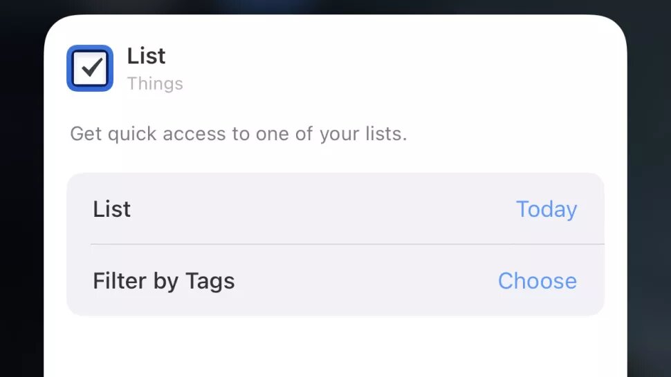 Bien sûr, vous pouvez mélanger et assortir les tailles de widgets. Pour ce faire, vous pouvez appuyer longuement dessus. Par exemple, Things 3 permet aux utilisateurs de sélectionner une liste ou un ensemble de balises spécifiques à afficher dans le widget. Tous les widgets ne peuvent pas être modifiés de cette manière, mais il vaut la peine de jeter un coup d’œil pour voir lesquels le peuvent.