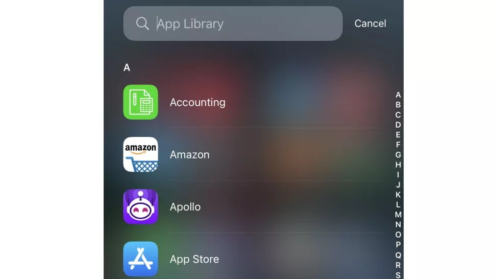 La bibliothèque d’applications peut être trouvée en faisant glisser vers la droite de vos écrans d’accueil, les applications étant filtrées par catégories prédéterminées (les mêmes que sur l’App Store).