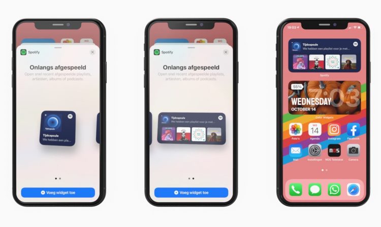 Pour utiliser le widget, vous devez disposer d’iOS 14 et de la version la plus récente de Spotify. Si l’application a été mise à jour, vous devez d’abord l’ouvrir une fois. Ensuite, vous l’ajoutez comme vous ajoutez d’autres widgets. Ce qui signifie: