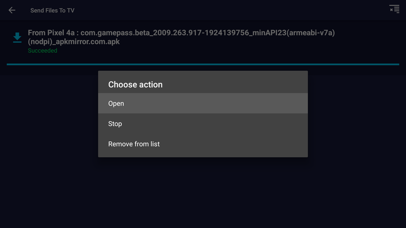 Encore une fois, si ce bouton Ouvrir ne fait rien, vous devrez retourner dans votre gestionnaire de fichiers sur votre Android TV pour terminer l’installation.
