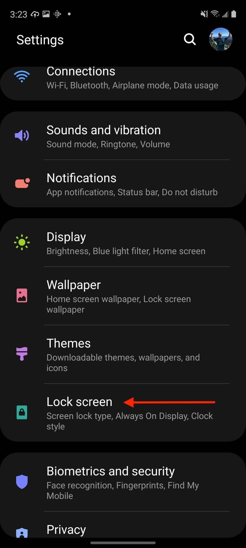 2. Faites défiler vers le bas et appuyez sur Écran de verrouillage.