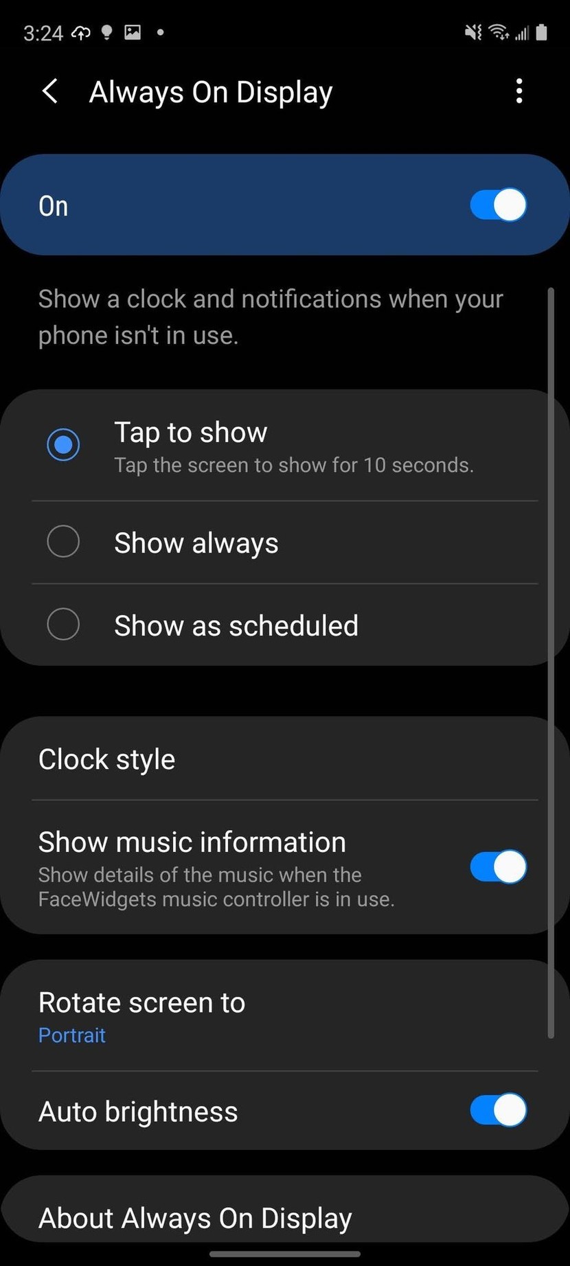 9. Appuyez sur Style de l’horloge pour changer l’apparence ou la couleur de l’horloge de l’écran Always On Display.