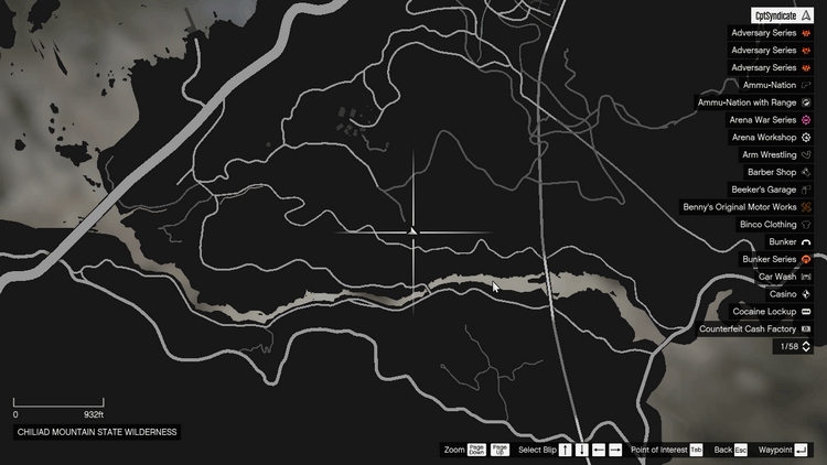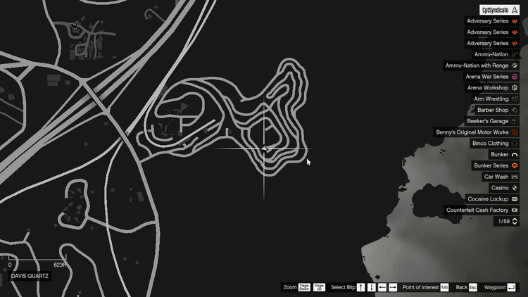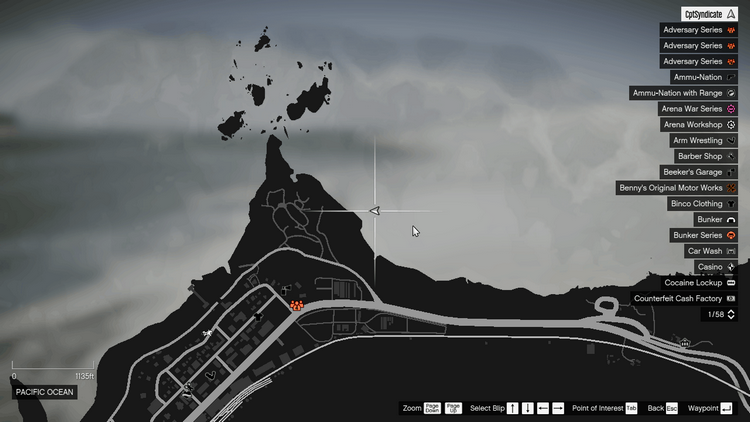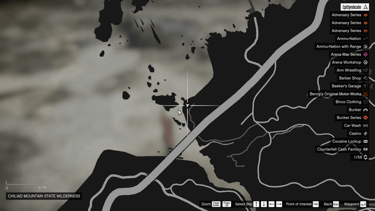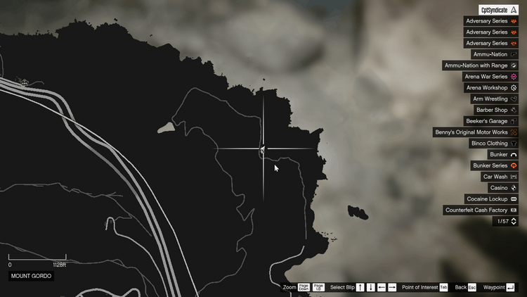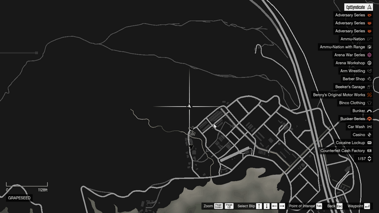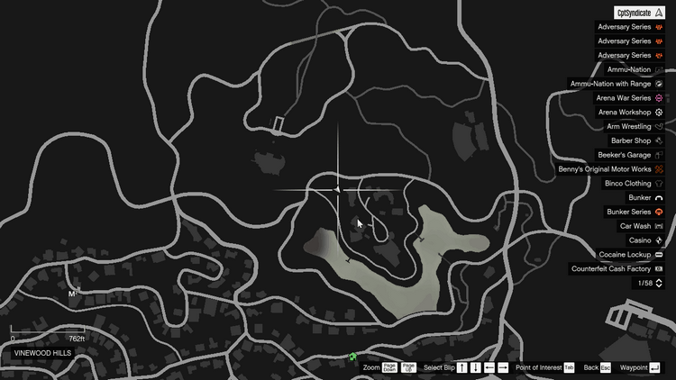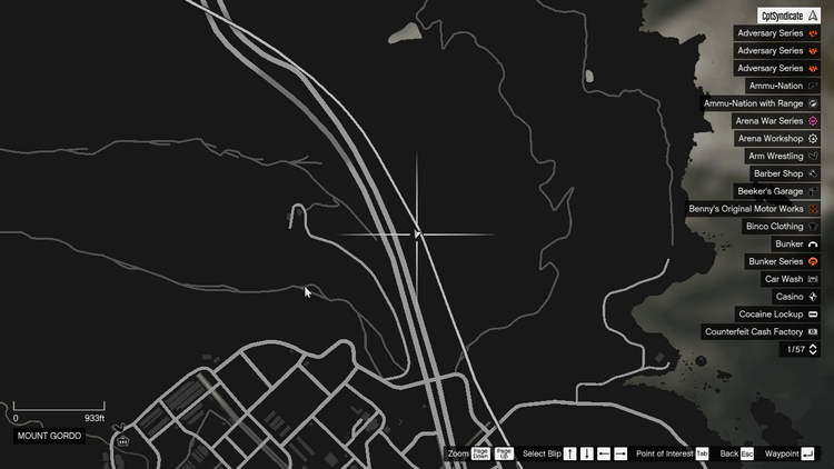 Celui-ci est situé au sommet d’une falaise / mini montagne à Vinewood Hills surplombant le stade de l’autre côté de la route.