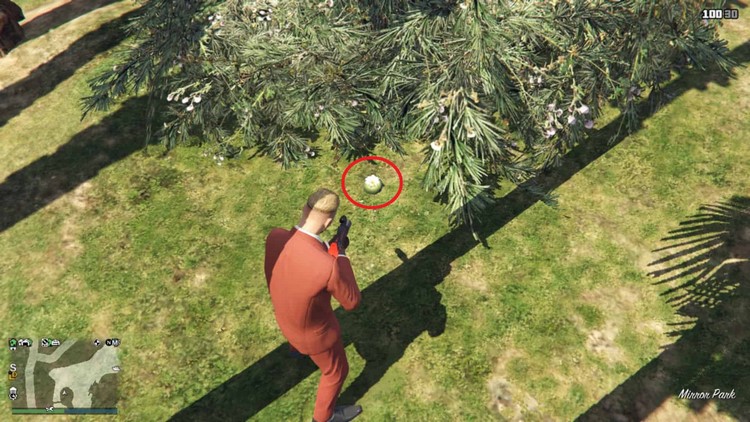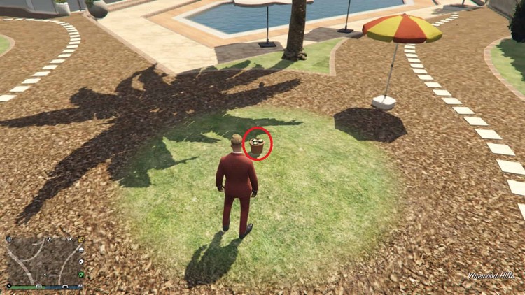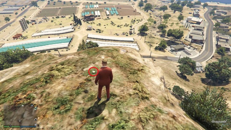 L’usine est située dans la cour d’une maison près d’un mini parapluie dans une petite parcelle d’herbe à Vinewood Hills.