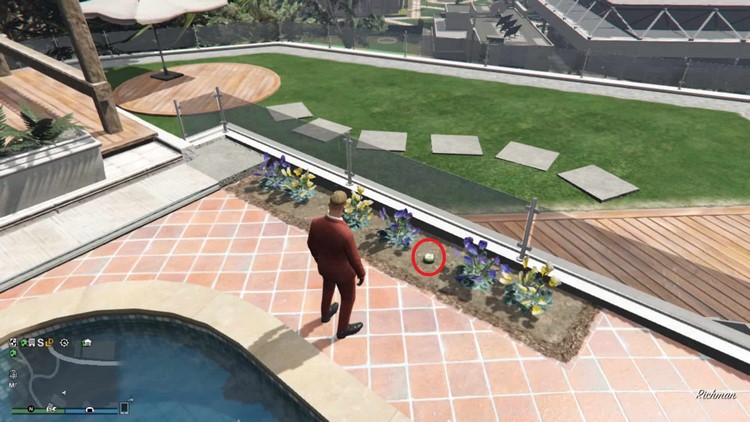 Il est situé dans le petit jardin près de la piscine de la maison Elgin à Del Perro.