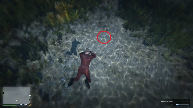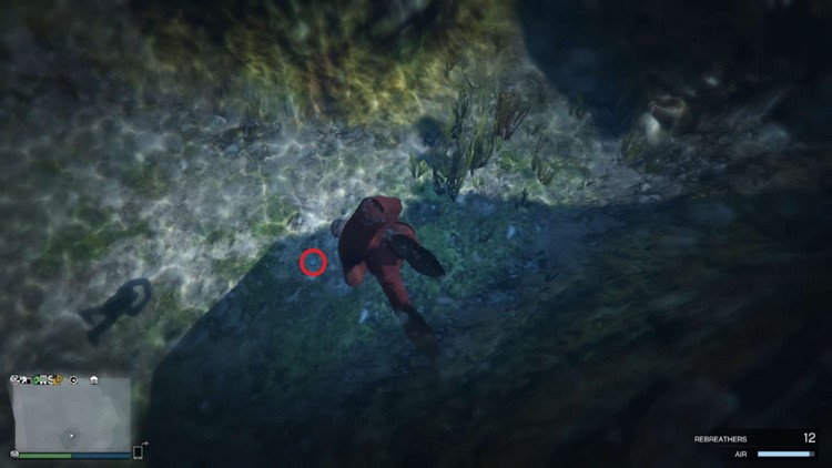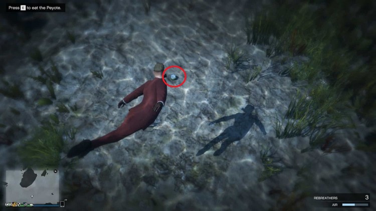 Il est un peu difficile de distinguer visuellement l’emplacement exact de la plante ici, mais si vous nagez dans cette zone particulière entre les rochers et l’herbe, vous obtiendrez un pop-up pour manger la plante.