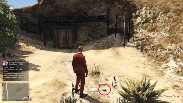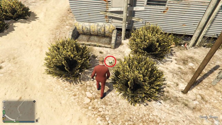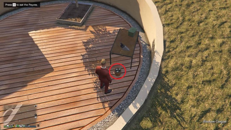 L’usine est située juste à l’entrée d’une ancienne maison située dans le désert de Grand Senora. La plante est à l’intérieur d’un pot de fleurs.