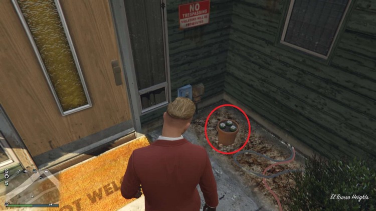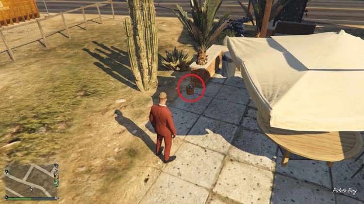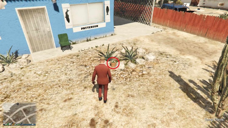 La plante est située à l’intérieur d’un pot de fleurs, qui se trouve sous le porche d’une maison bleue située à Sandy Shores. Le pot de fleurs est entre quelques petits rochers et buissons.