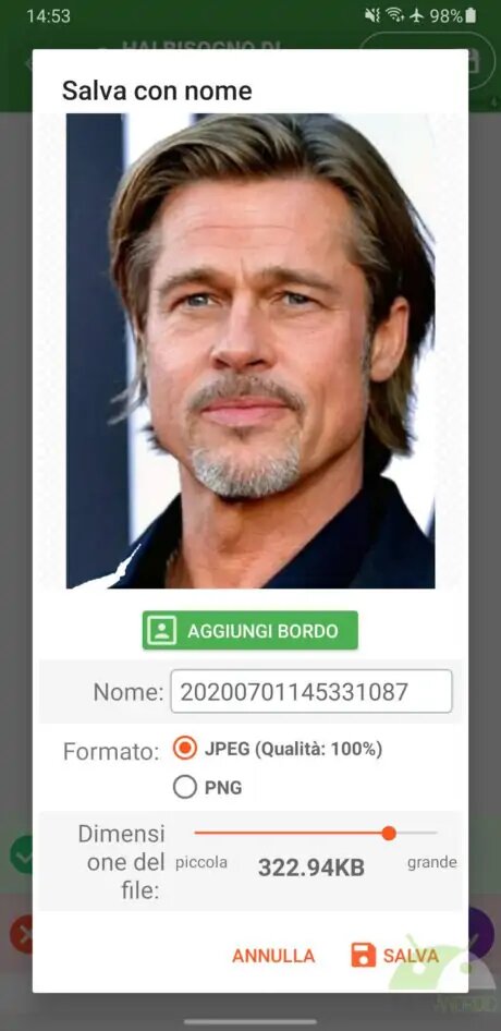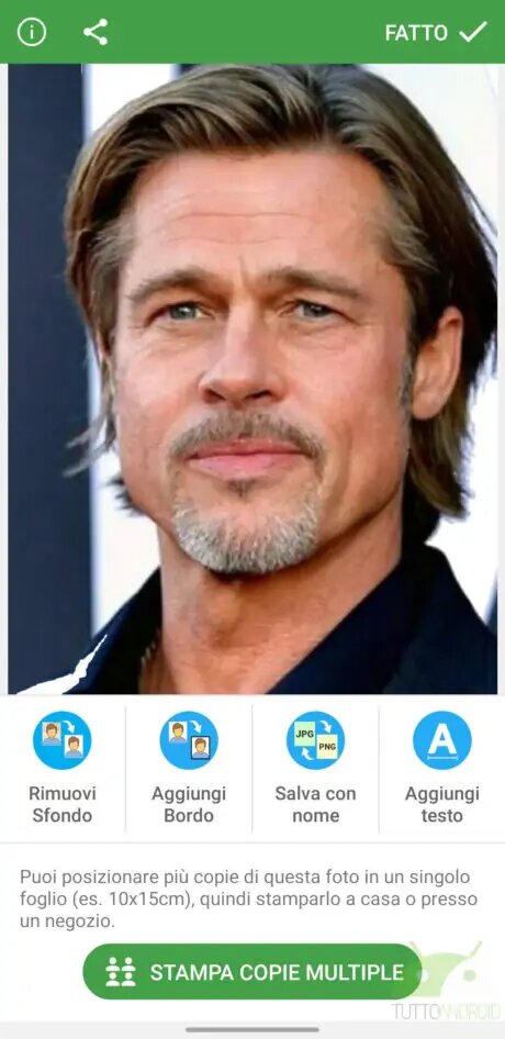 Notre conseil est de sélectionner une photo qui a un fond blanc, bien que l’application vous permette de supprimer plus ou moins facilement l’arrière-plan au cas où vous n’en auriez pas de disponible. L’application procédera à recadrer correctement la photo, la retouchera pour améliorer un peu sa qualité et enfin la sauvegardera dans la mémoire du smartphone.