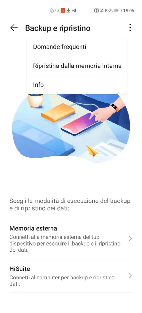 À ce stade, nous devons restaurer la sauvegarde qui est présente dans le dossier «Huawei» sur le smartphone, il suffit de suivre ces points:
