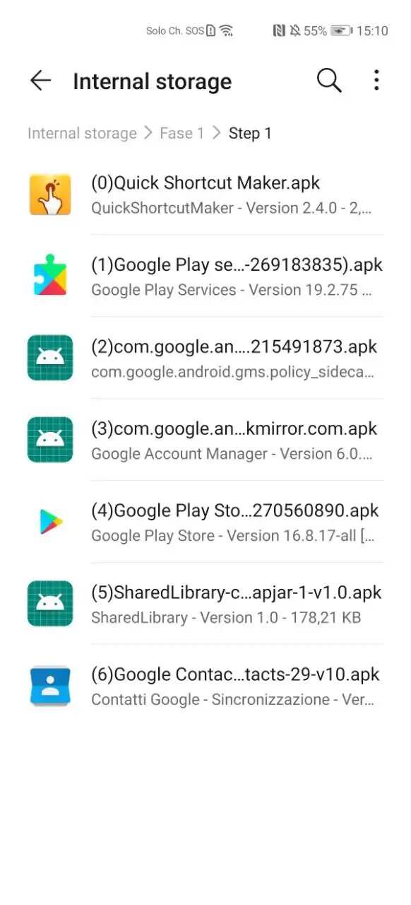 - Ouvrez «Gestion des fichiers», quittez le dossier «Étape 1» et entrez «Étape 2», installez ici la seule application présente (Services Google …)