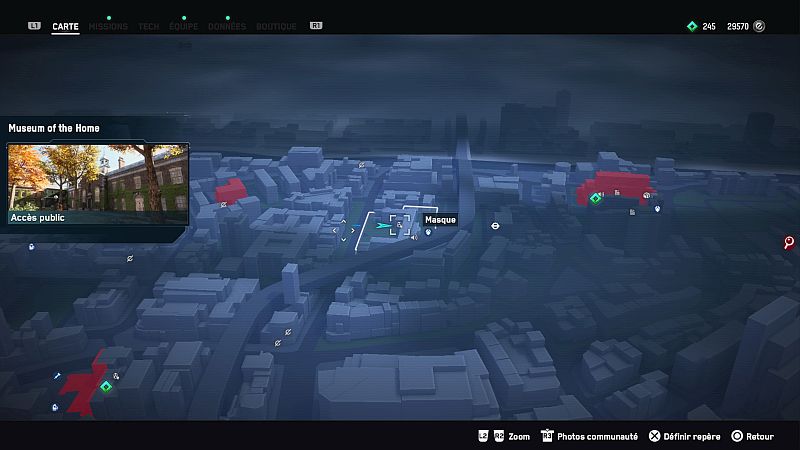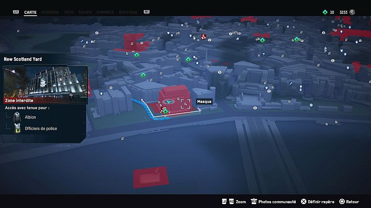 Situé à l’angle nord de Camden, Gare Internationale de St-Pancras est un immense bâtiment. Le masque est au dernier étage, voici un raccourci pour obtenir le masque en carton standard dans Watch Dogs Legion. Rendez-vous sur le toit, à partir de là, vous pouvez détourner les caméras de sécurité et utiliser un robot araignée pour attraper le masque. Un peu délicat mais possible. Appuyez sur V pour scanner la zone et recherchez Spiderbot Dock, il se trouve à gauche du bureau principal.