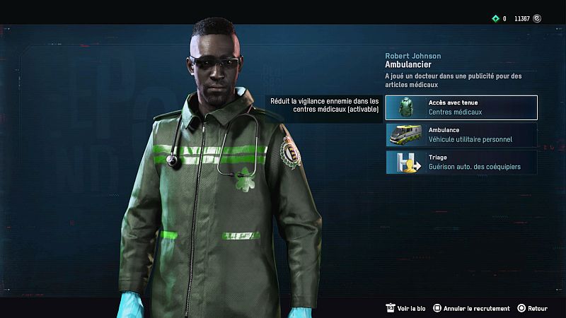 Un ambulancier a une ambulance à sa disposition. Cet agent peut invoquer ce véhicule à tout moment et est livré avec un accès uniforme et une arme de choc. L’ambulancier est une sorte de personnage fort dans Watch Dogs: Legion. La mission de recrutement est simple, il suffit de trouver quelqu’un et c’est fait.