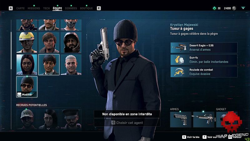Un tueur à gages a plus de capacités et de compétences qu’une recrue moyenne. Ils ont un pistolet Desert Eagle et un fusil d’assaut G36, deux grandes armes à avoir dans le jeu. Un tueur à gages professionnel peut également effectuer un retrait de Guntaka, ce qui signifie qu’il peut tuer des ennemis même de l’avant et pas seulement de l’arrière jusqu’à ce qu’ils aient un pistolet équipé. Ils peuvent également effectuer facilement un jet d’esquive en appuyant simplement deux fois sur le bouton de montée. S’il vous semble que vous devez avoir un tueur à gages dans votre équipe, continuez à lire ce guide pour obtenir l’emplacement du tueur à gages de Watch Dogs Legion, où vous pouvez certainement en recruter un dans votre équipe.