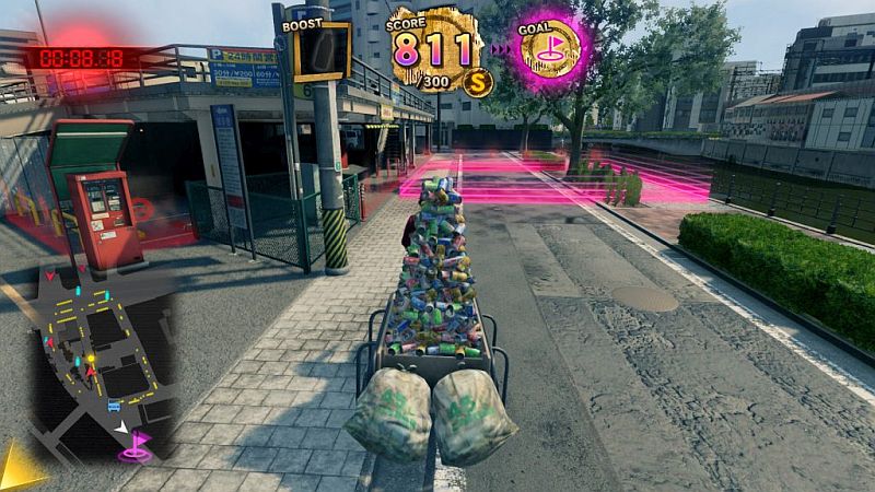 L’objectif principal est simple: Ichiban a besoin de collecter autant de canettes que possible dans un délai limité en conduisant un chariot autour de la zone réglementée, qui est toujours la même. En fonction de la difficulté, vous rencontrerez plus de canettes que d’habitude, avec l’inconvénient que plus d’adversaires seront également à l’affût.