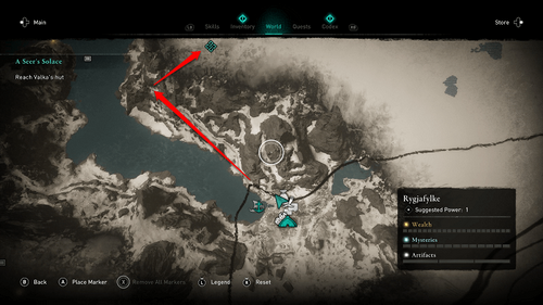 Dirigez-vous vers le nord de Fornburg pour atteindre la cabane de Valka. L’emplacement exact est indiqué sur la carte ci-dessous, marqué par le symbole de quête.