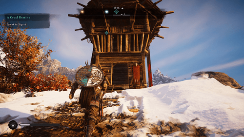 Pour commencer, parlez à Sigurd. Suivez le marqueur de quête pour déterminer son emplacement.