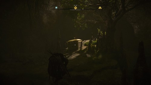 Derrière la cascade, il y a une petite grotte. Il y a une autre petite étendue d’eau. Plongez-y et nagez sous l’eau dans le couloir. Dès que vous faites surface à l’autre bout, le coffre sera devant vous.