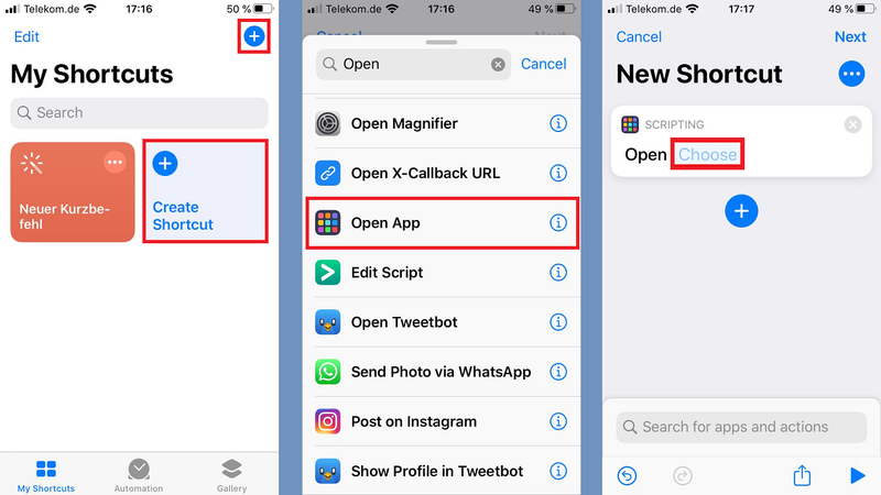 - Appuyez sur l’ icône plus dans le coin supérieur droit pour créer un nouveau raccourci.