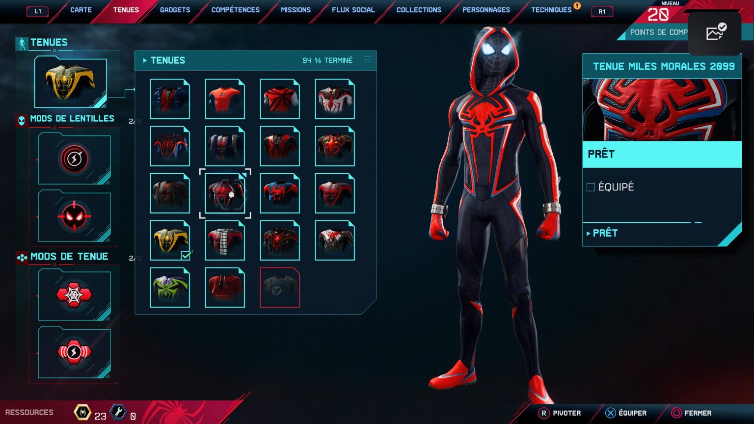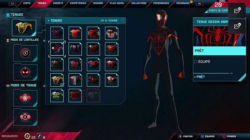 Vous avez maintenant toutes les informations dont vous avez besoin pour débloquer tous les costumes de Spider-Man: Miles Morales. Une fois que vous avez déverrouillé une tenue, vous pourrez la porter quand vous le souhaitez en accédant au sous-menu » Tenue » dans le menu principal du jeu.
