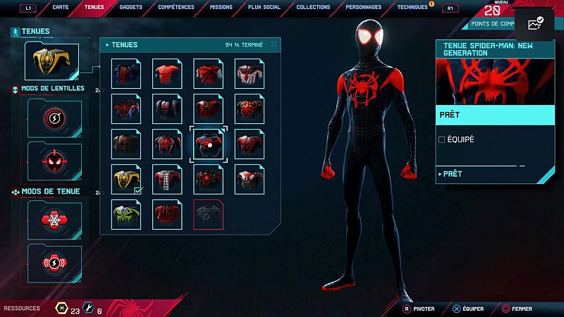 - Tenue Spider-Man New Generation : nécessite le niveau 13, 18 jetons d’activité et 4 pièces high-tech.