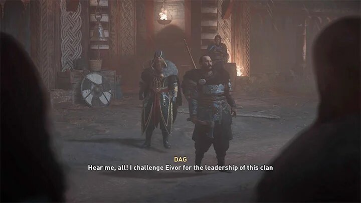 Les cris de Dag réveilleront Eivor – il attend à l’extérieur du bâtiment. Dag défiera Eivor en duel pour avoir pris la direction du clan.