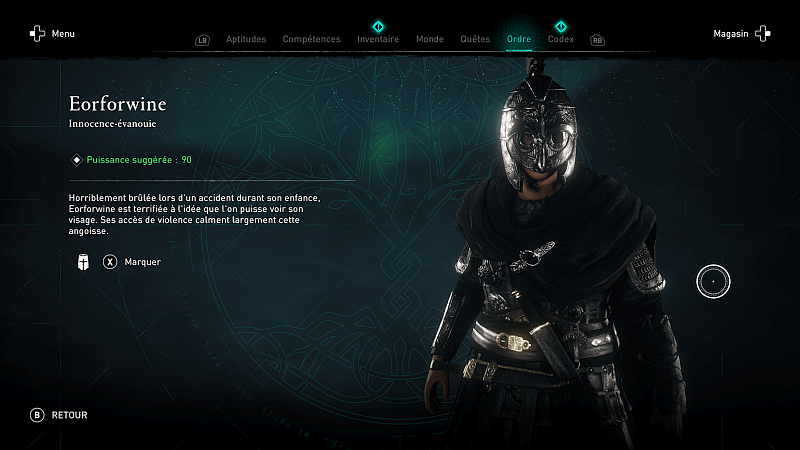 Horriblement brûlée lors d’un accident durant son enfance, Eorforwine est terrifiée à l’idée que l’on puisse voir son visage. Ses accès de violence calment largement cette angoisse.