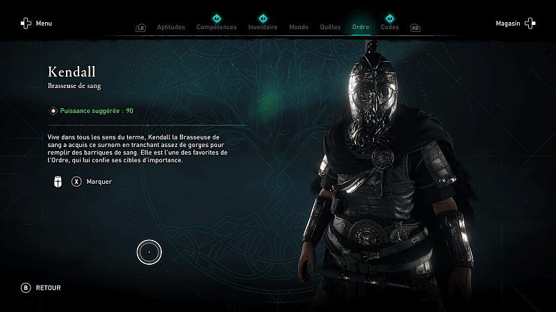 Vive dans tous les sens du terme, Kendall la Brasseuse de sang a acquis ce surnom en tranchant assez de gorges pour remplir des barriques de sang. Elle est l’une des favorites de l’Ordre, qui lui confie ses cibles d’importance.