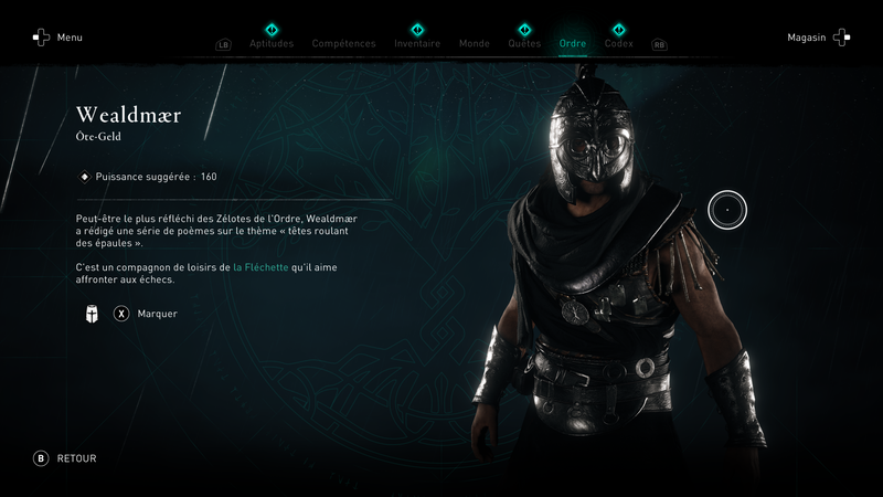 • Pendant l’arc d’histoire « Ledecestrescire » (première région dans laquelle vous vous engagez en Angleterre) – Quête principale « Tête lourde »: Après la bataille contre le boss de Leofrith, vous pouvez choisir d’épargner la vie de Leofrith. Choisissez de tuer Leofrith pour que les membres de l’Ordre des Anciens (Zélotes) vous chassent. Si vous l’épargnez, il vous dira un parchemin avec votre nom dessus que vous pouvez brûler pour que les Zélotes ne vous chassent jamais.