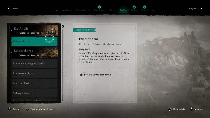 Faiseur de roi est la première quête « chapitre 1 » de « L’histoire du thegn Oswald » d’Assassin’s Creed Valhalla.