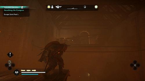 Si vous choisissez le contournement avec Erke. Il vous guidera à travers les toits jusqu’à ce que vous atteigniez les quais. En arrivant sur le navire du Compas vous allez le défier en combat singulier.