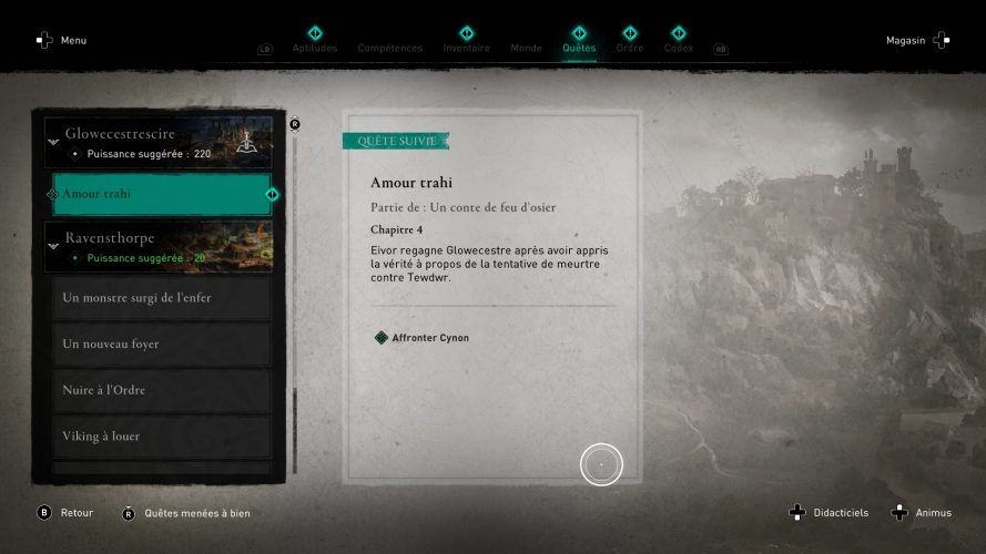 Chapitre 4 : Eivor regagne Glowecestre après avoir appris la vérité à propos de la tentative de meurtre contre Tewdwr.
