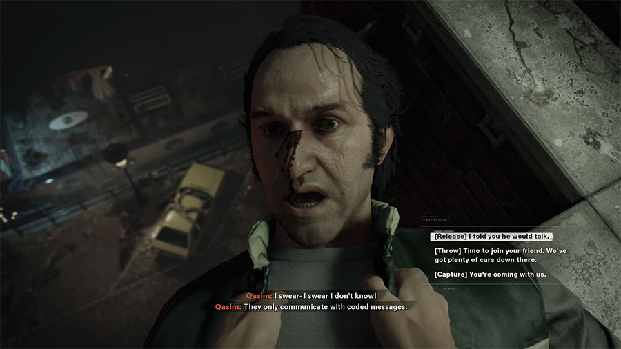 Si vous choisissez de capturer Qasim, vous l’assommez et l’amenez pour l’interroger. Cela se passe sans accroc.