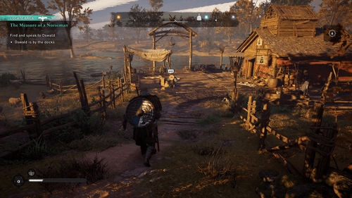 Afin de débuter ce holmgang, vous devez monter dans un bateau à proximité et remontez la rivière jusqu’au marqueur d’objectif turquoise à environ 700 mètres. Vous devrez parler à Finnr ici.
