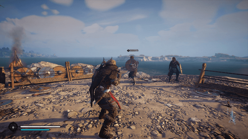 Remontez dans votre drakkar et naviguez vers le marqueur d’objectif turquoise à environ 500 mètres. Lorsque vous arrivez, vous devez brûler les chariots et la cargaison – utilisez votre vision d’Odin pour découvrir les zones à brûler.