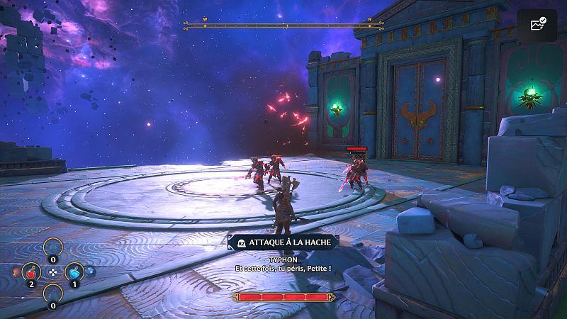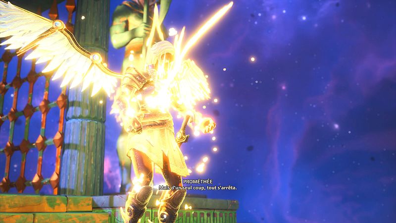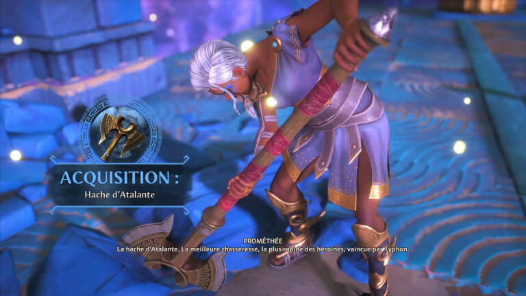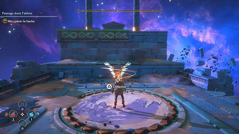 Après le combat, placez vous sur la dalle ronde pour récolter la toute première Foudre de Zeus (essentiel à l’extension de votre barre d’énergie).
