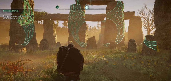 Le premier mystère dans cette région est un ensemble de pierres dressées et elles peuvent être trouvées dans l’est de la région. Le rocher avec lequel vous pouvez interagir se trouve au centre de la zone. Une fois que vous savez quel symbole créer, dirigez-vous vers le sud des Standing Stones et regardez en arrière vers le centre de la zone. Ici vous trouverez le motif, une fois que vous vous tenez au bon endroit, dirigez la caméra de manière à ce qu’elle complète automatiquement le symbole.
