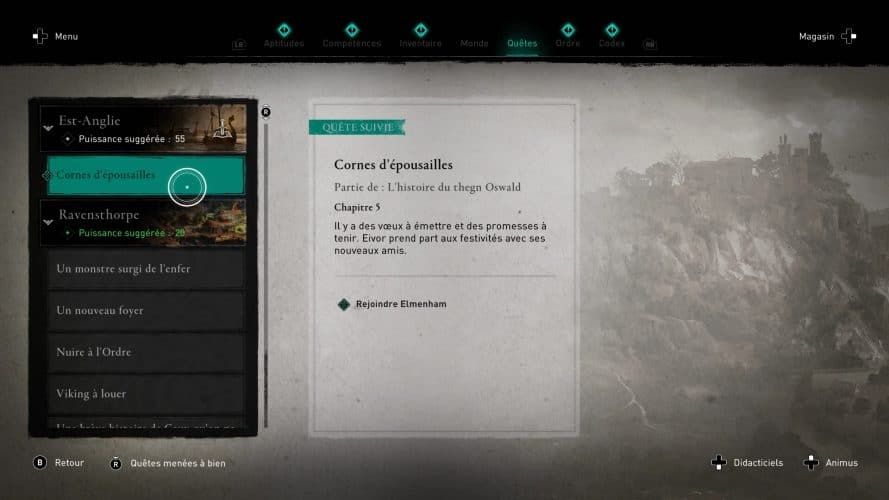 Cornes d’épousailles est la cinquième quête de l’arc de la saga L’histoire du thegn Oswald d’Assassin’s Creed Valhalla.