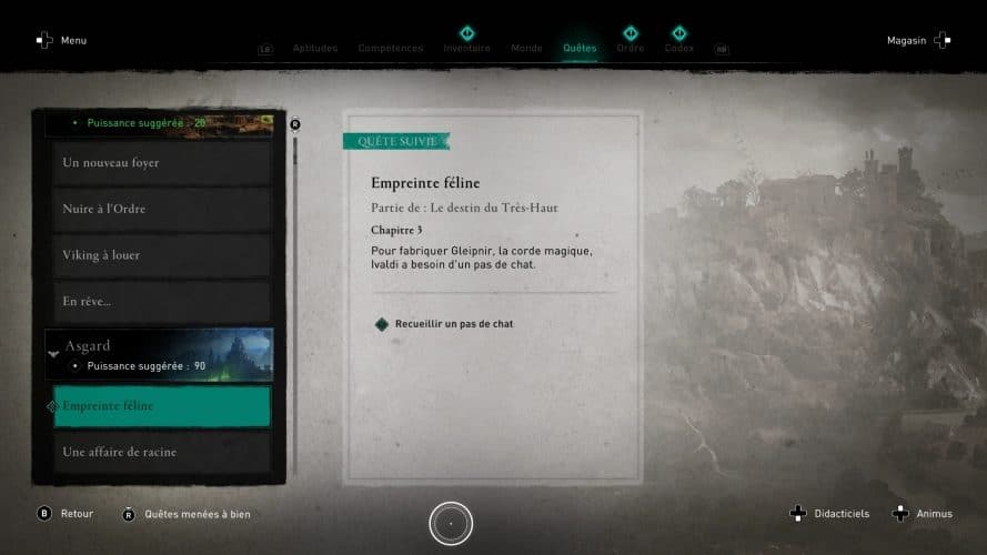 Empreinte féline est la sixième quête de l’arc de la saga Le destin du Très-Haut d’Assassin’s Creed Valhalla.